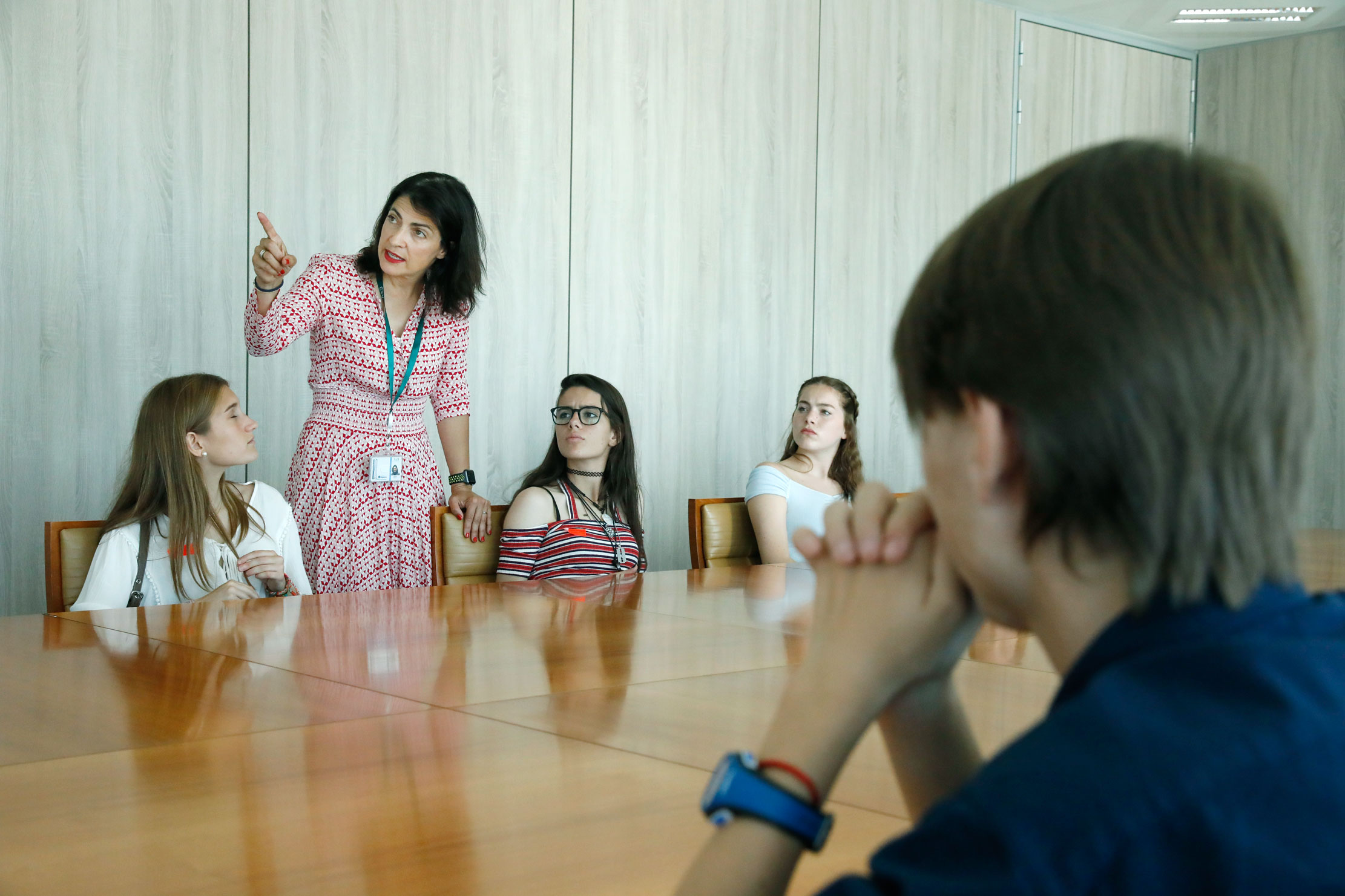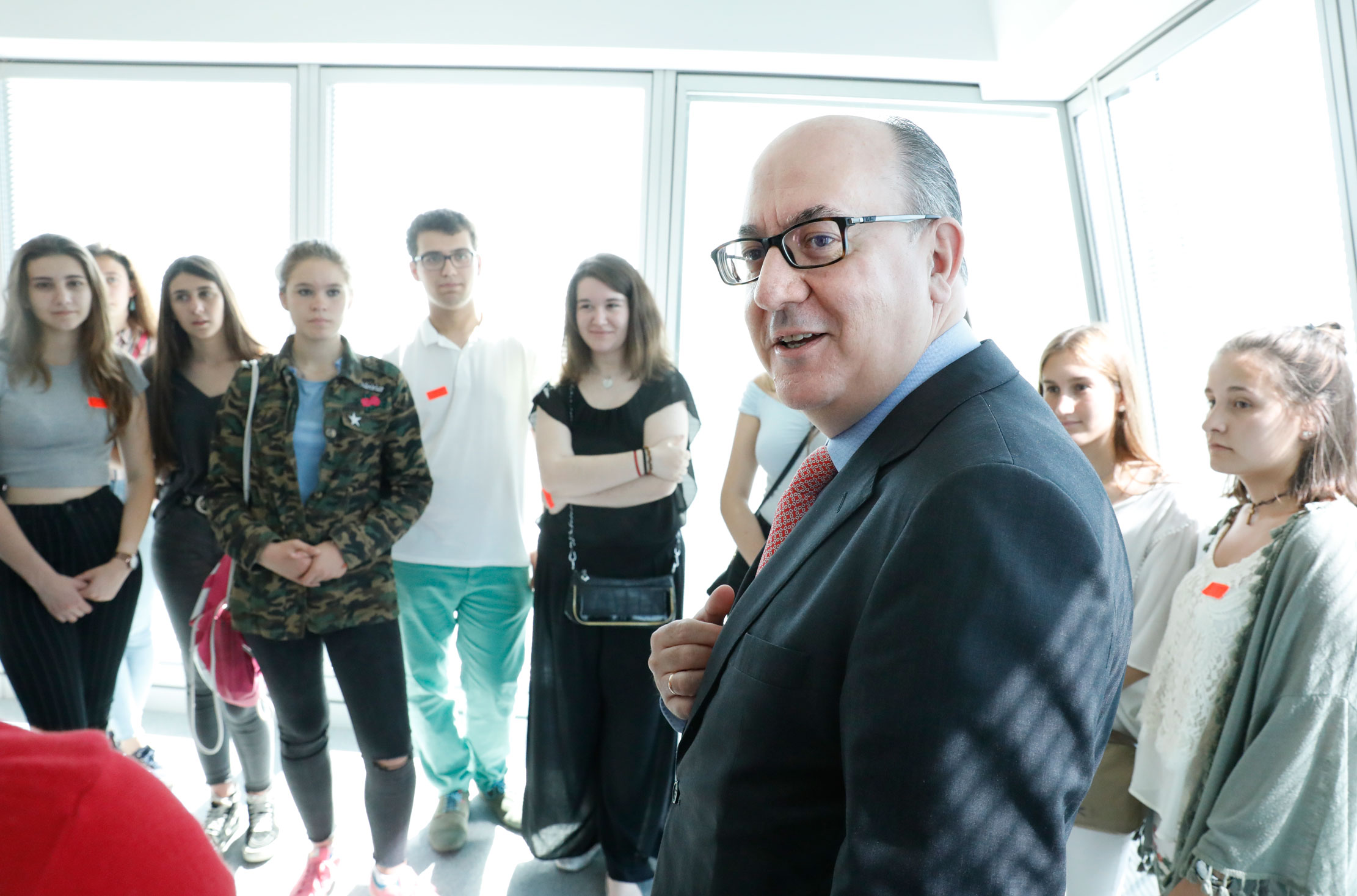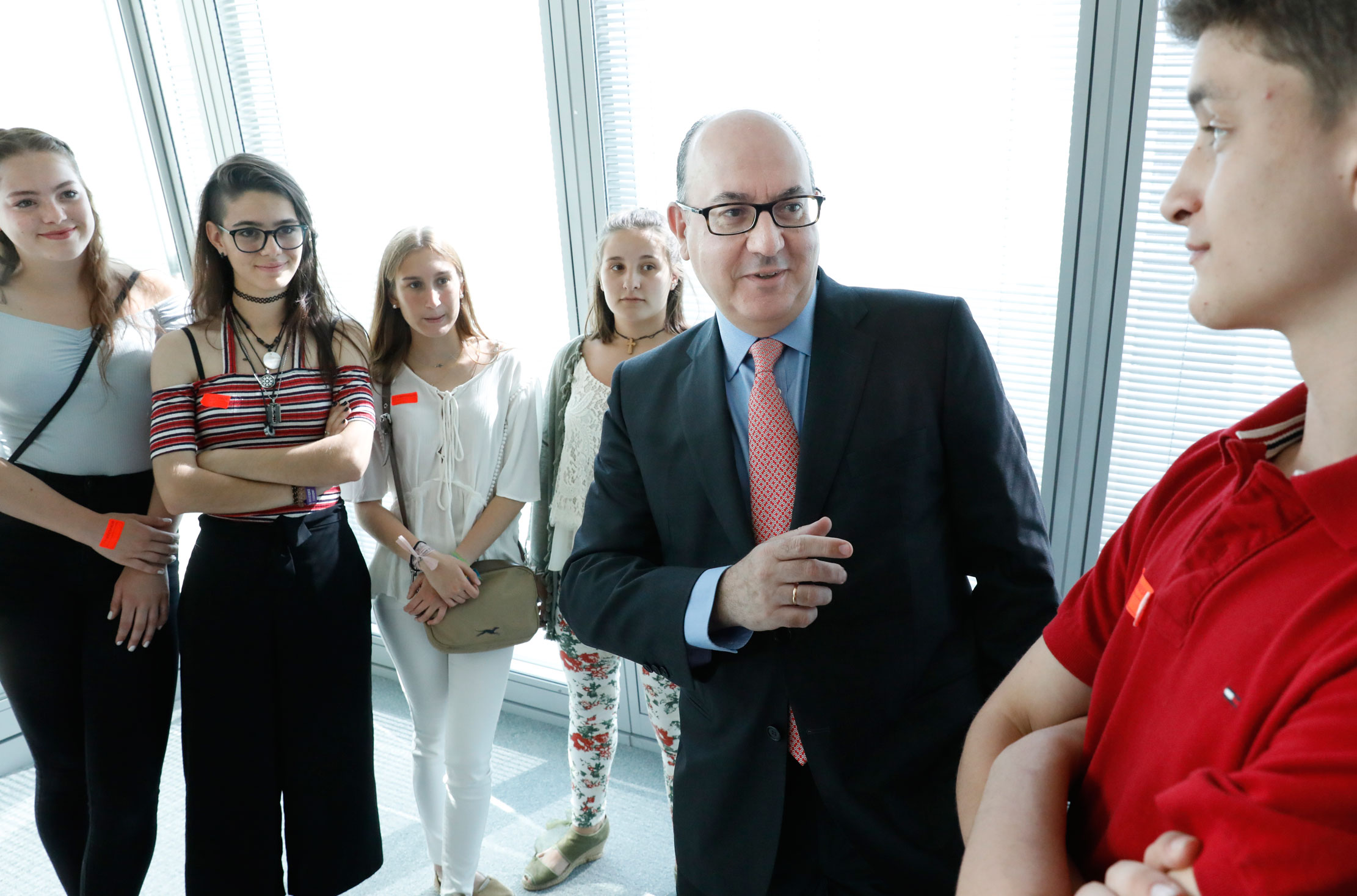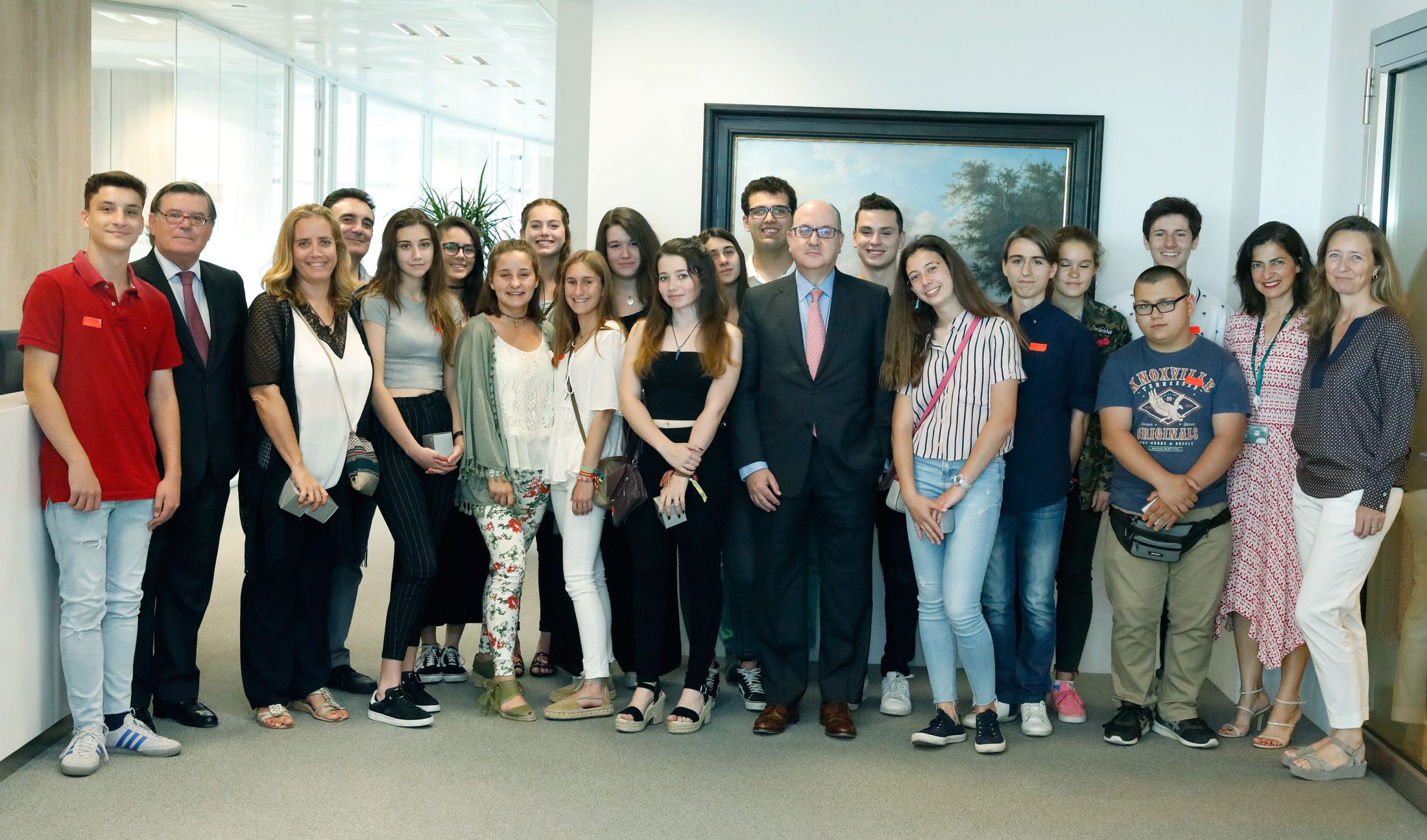 Alumnos del Colegio Santa Joaquina de Vedruna en Madrid recibieron el premio nacional de educación financiera 2018 de manos del presidente de la AEB, José María Roldán, en la sede de la Asociación.